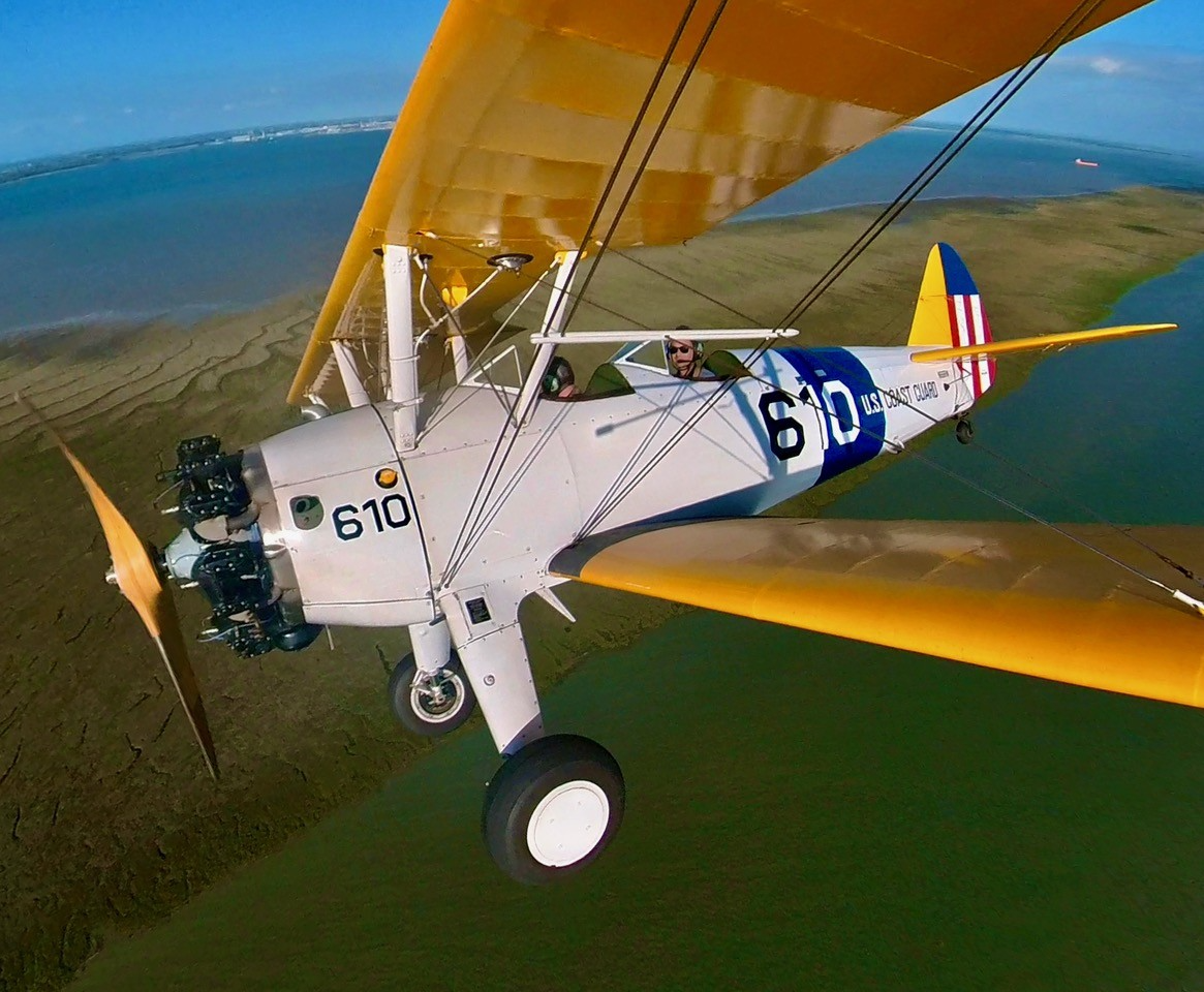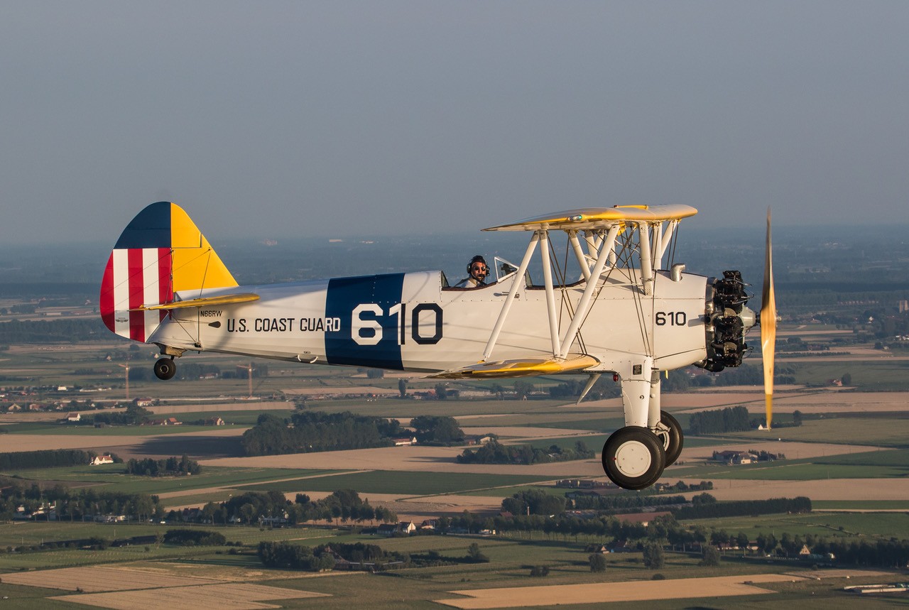 Operated by SDJ Aerobatics, this particular aircraft, Stearman N66RW, is a true veteran, built in August 1941 and originally used to train US military pilots during the Second World War.